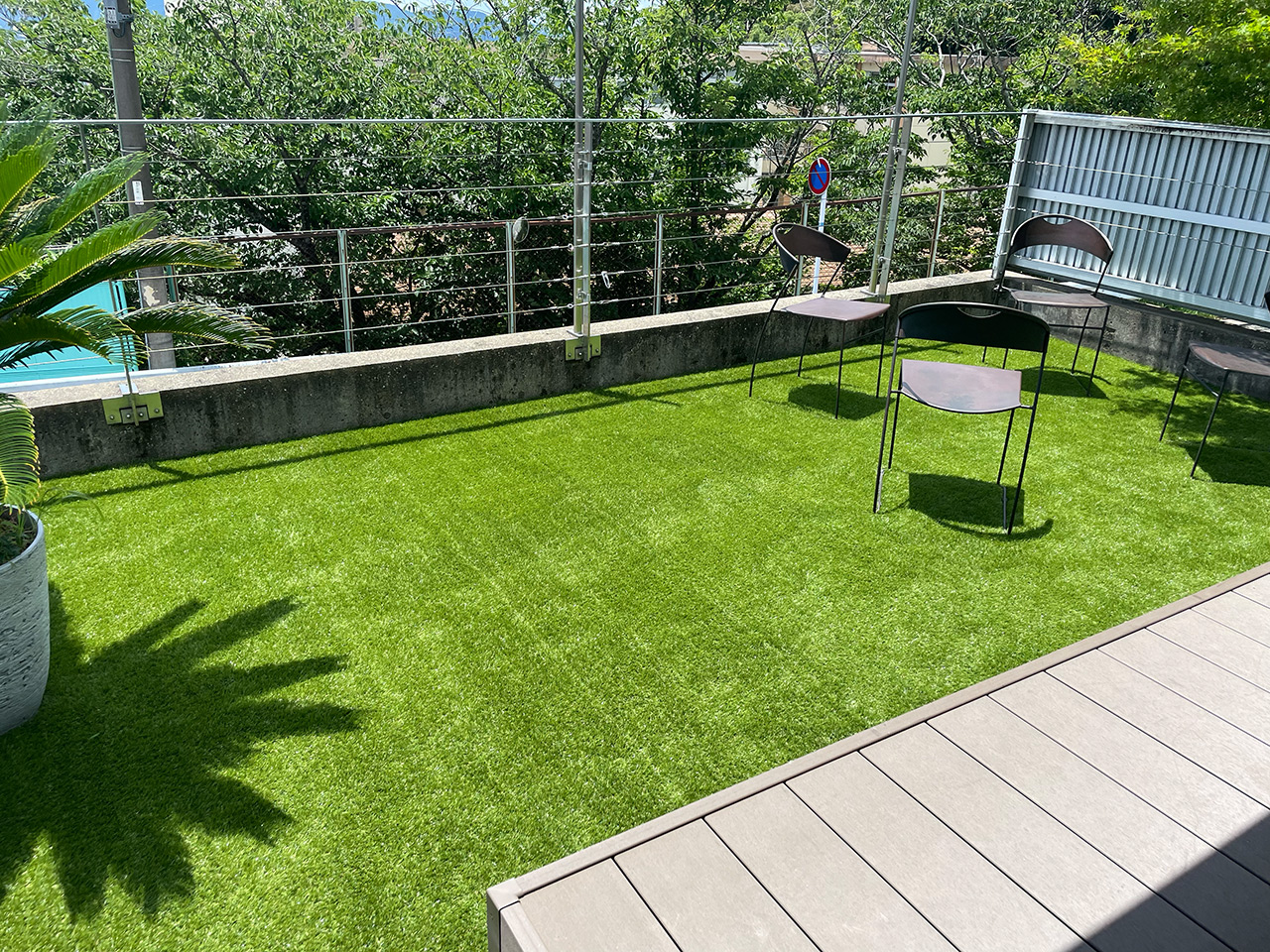 季節や日当たりなどに左右されることがなく、1 年を通してリアルな景観を維持できます。天然芝とは違い、水はけの悪い場所でも丁寧な下地処理により施工できます。日当たりの悪い場所や水はけの悪い場所にも人工芝はオススメです。